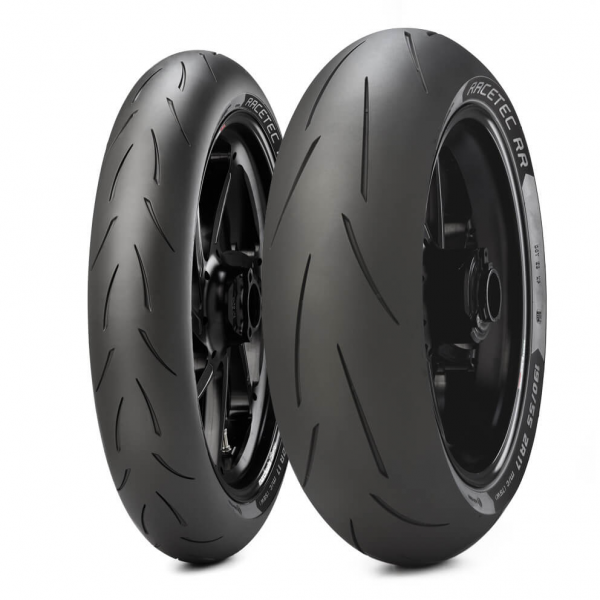 Der RACETEC™ RR Hinterreifen zeichnet sich durch die Cap-Base-Struktur mit zwei Mischungen und den besonders leitfähigen Mittelstreifen aus, der die Mischung der Reifenschultern von unten unterstützt und sie bei langen Geraden erwärmt. Dafür verteilt er die erzeugte Wärme auf die Schultern, hält sie auf Betriebstemperatur und gewährleistet optimalen Grip beim Einlenken.